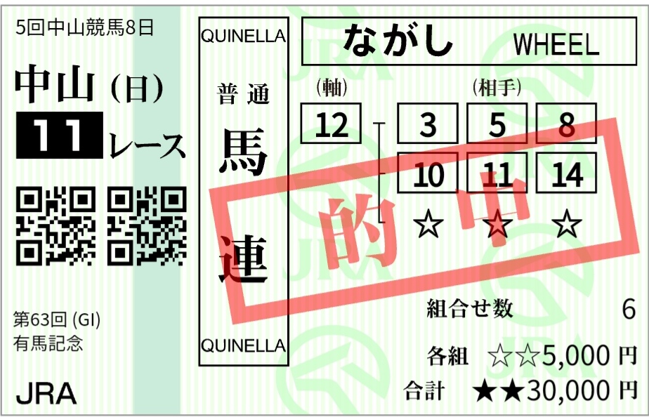 馬連9.4倍と三連複49.1倍的中キタコレでした!